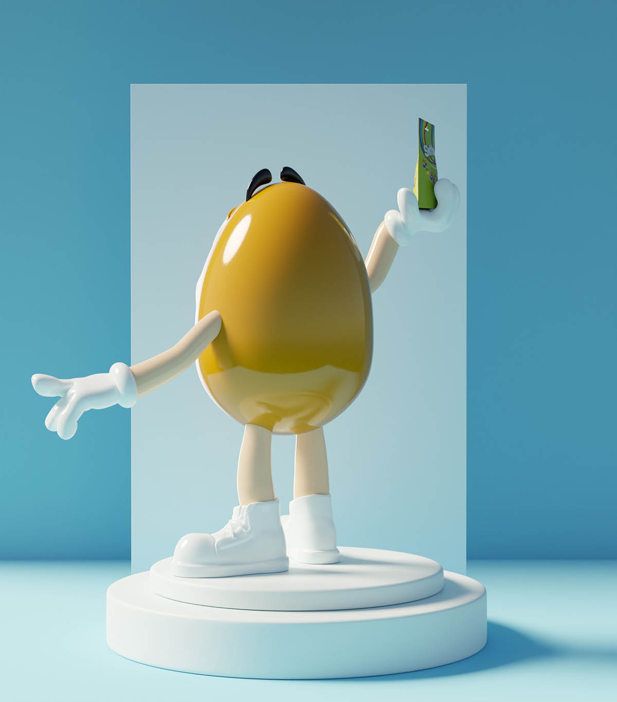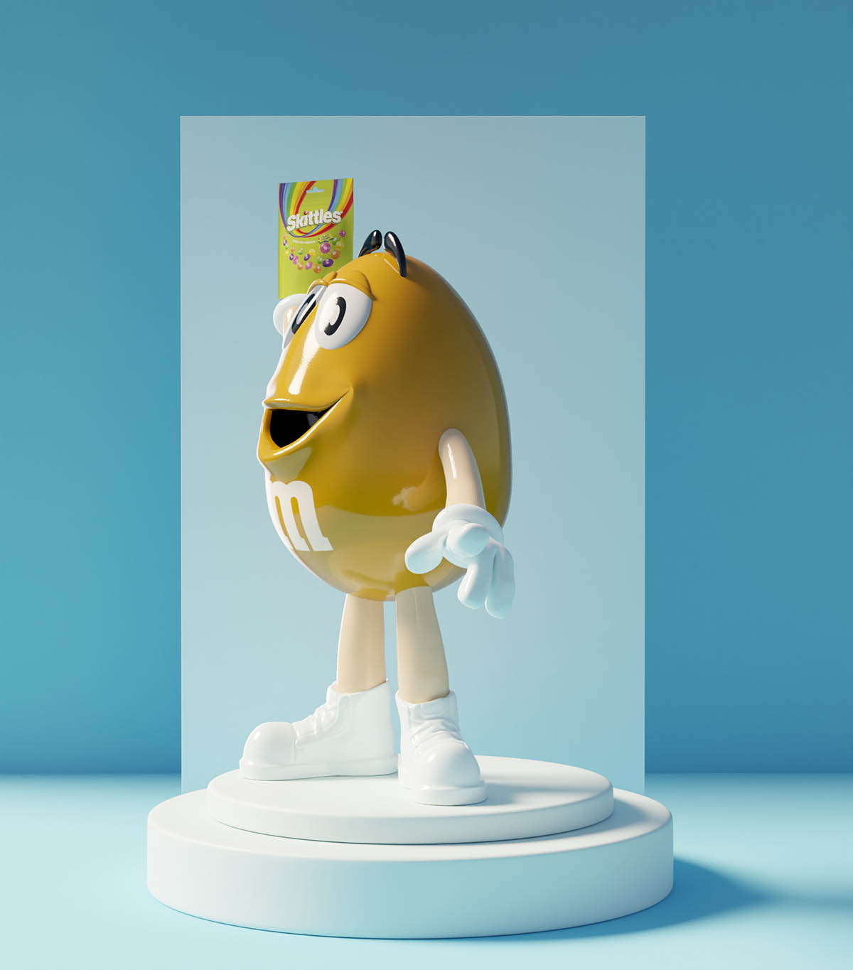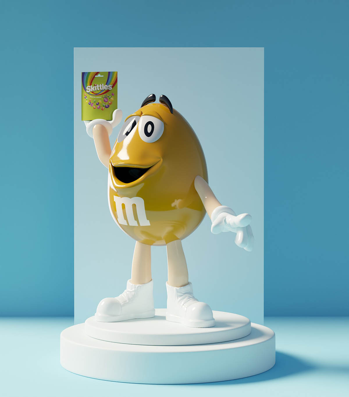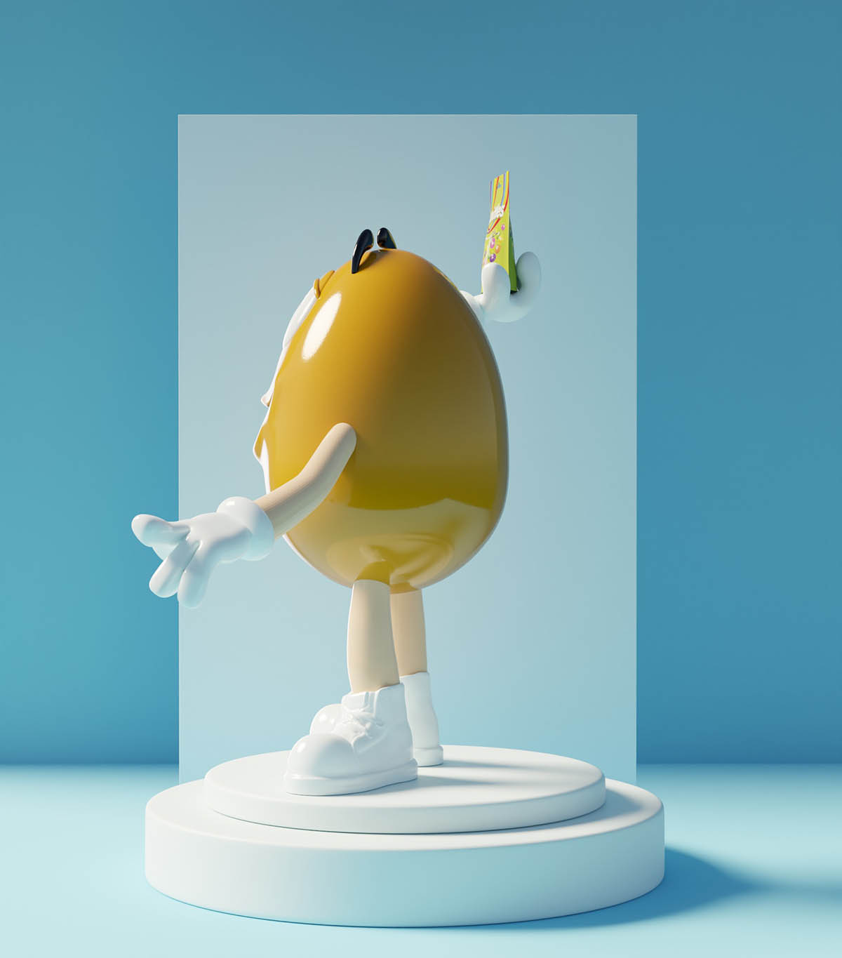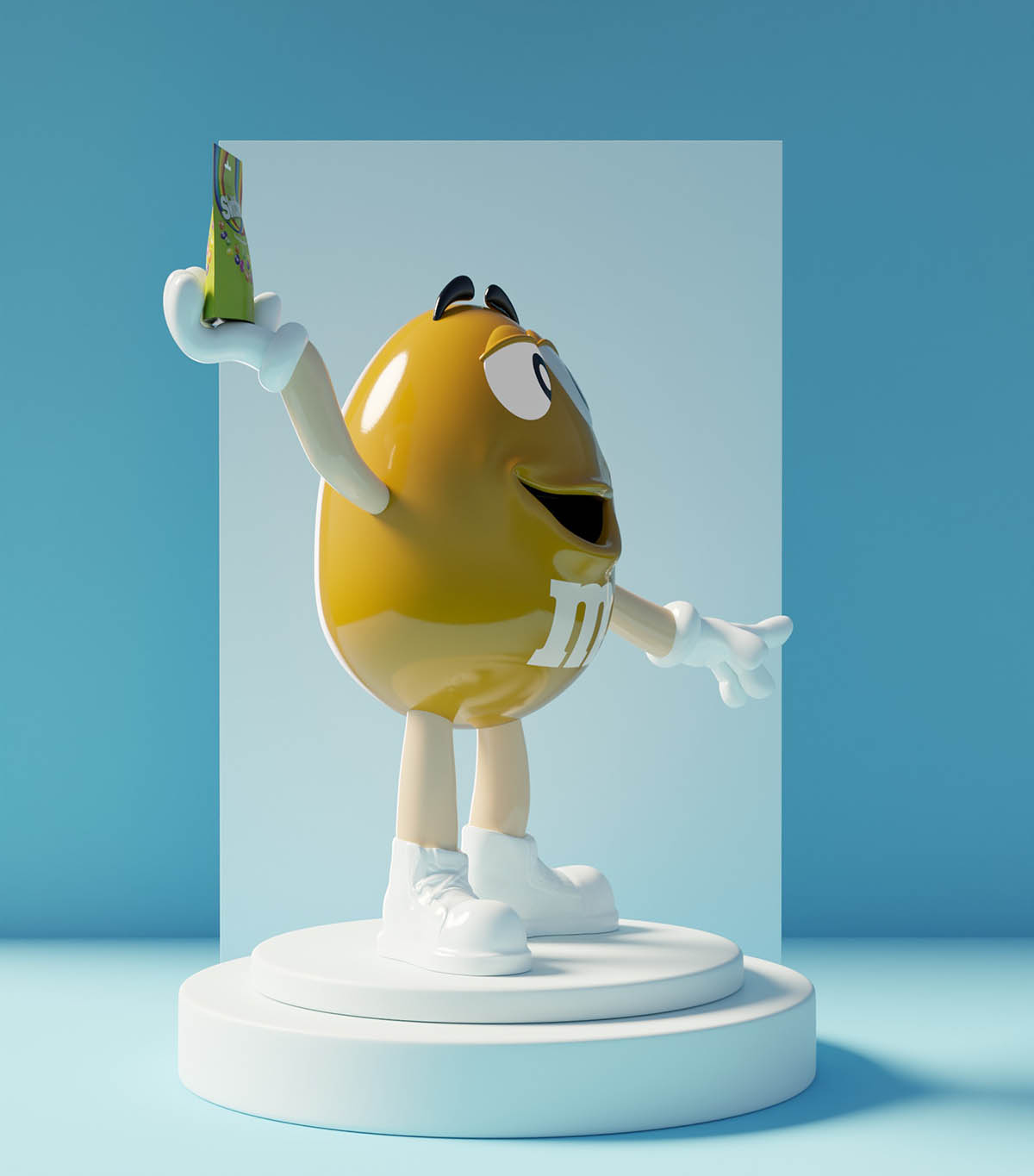 Les figures ont été reproduites avec un grand souci du détail : expressions faciales caractéristiques, gants, chaussures et les lettres « m » bien visibles sur le corps – le tout conforme aux directives de la marque. Les personnages adoptent des poses dynamiques, invitant à se prendre en photo avec eux.