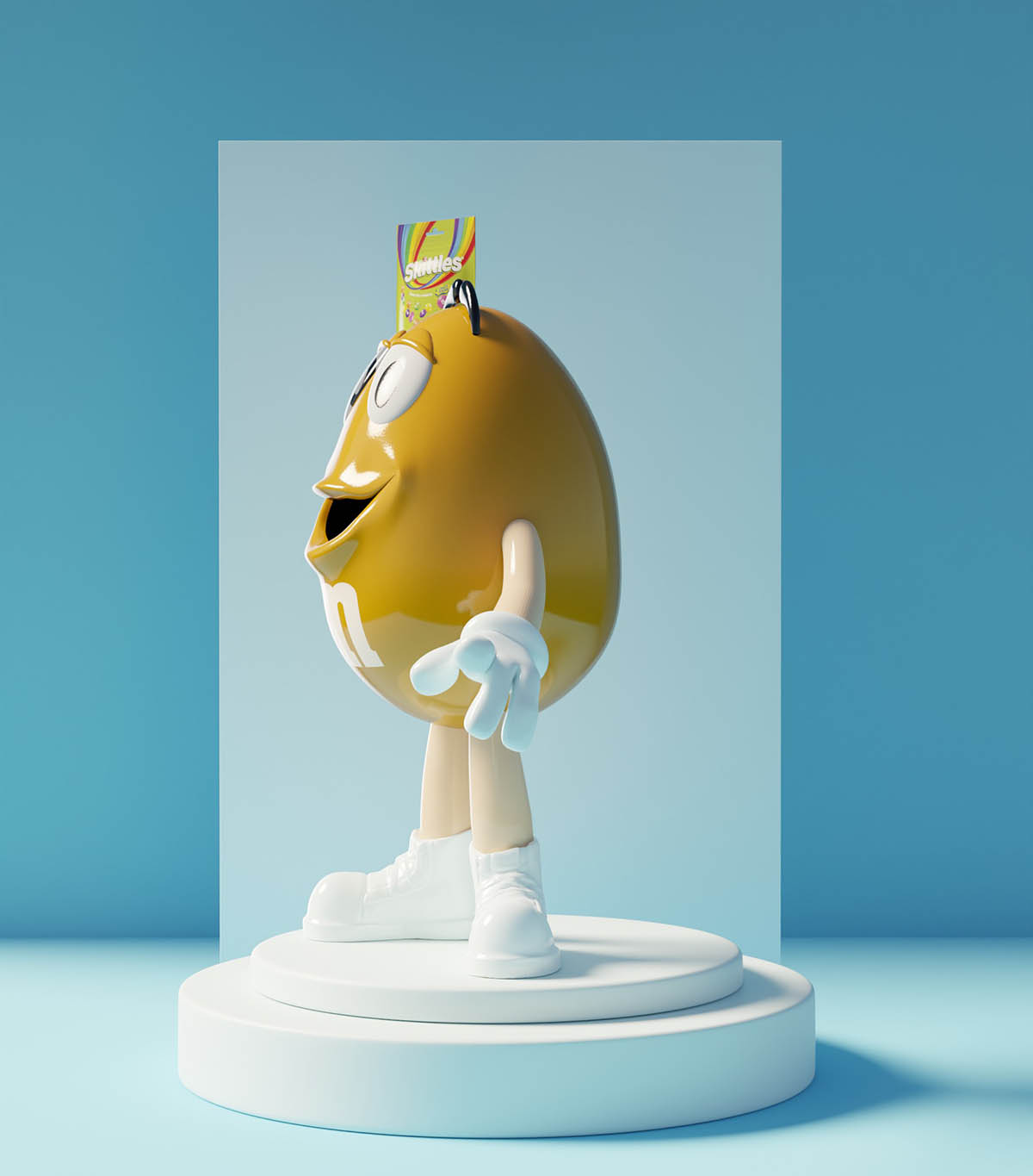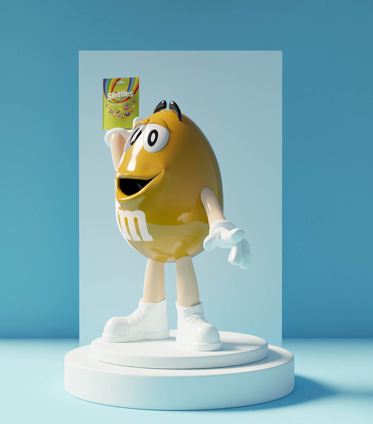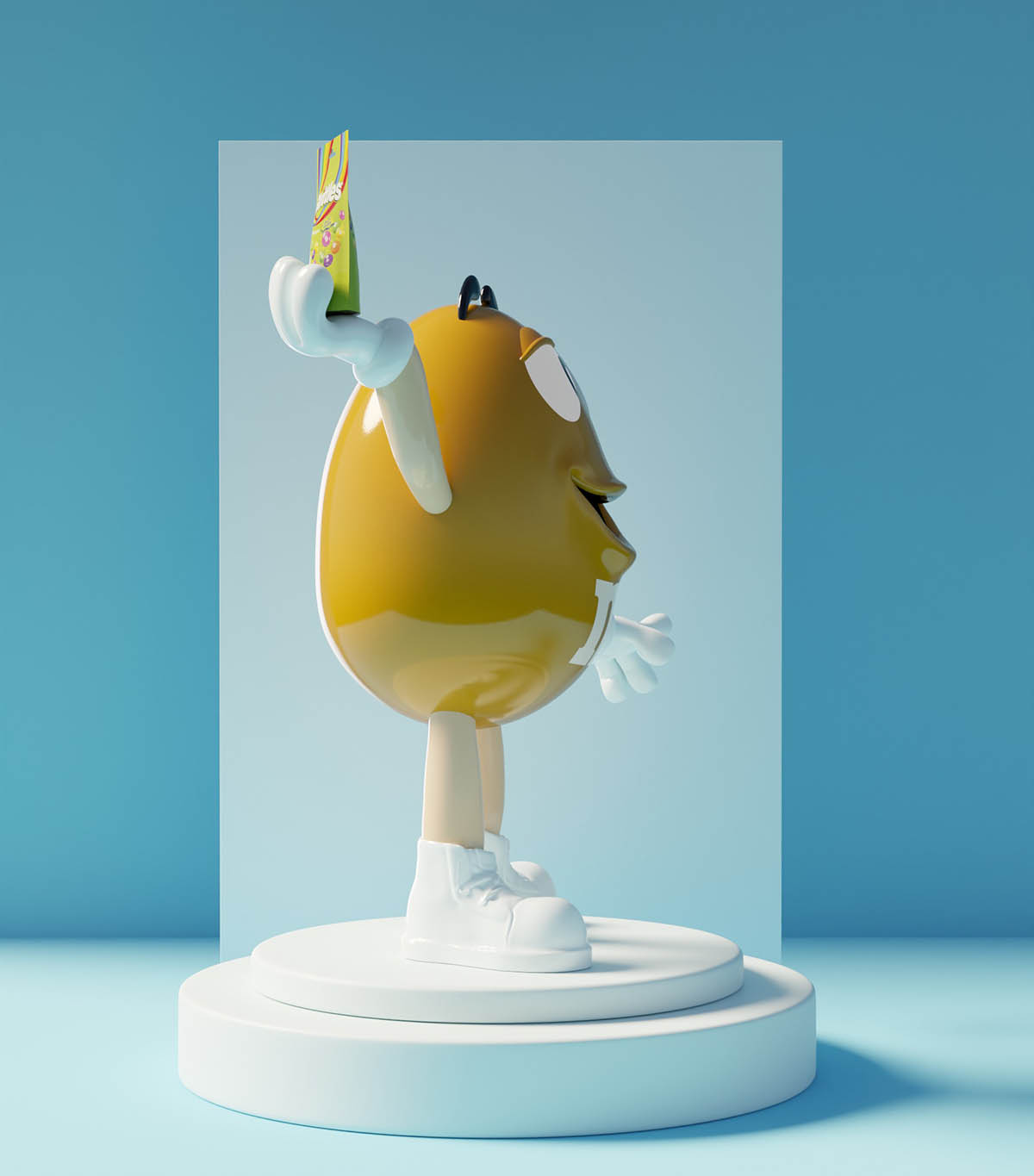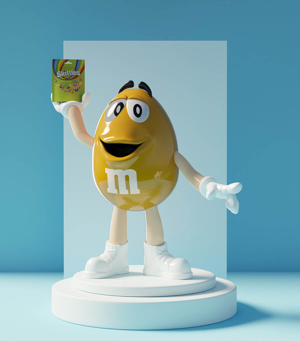 Les figures ont été reproduites avec un grand souci du détail : expressions faciales caractéristiques, gants, chaussures et les lettres « m » bien visibles sur le corps – le tout conforme aux directives de la marque. Les personnages adoptent des poses dynamiques, invitant à se prendre en photo avec eux.