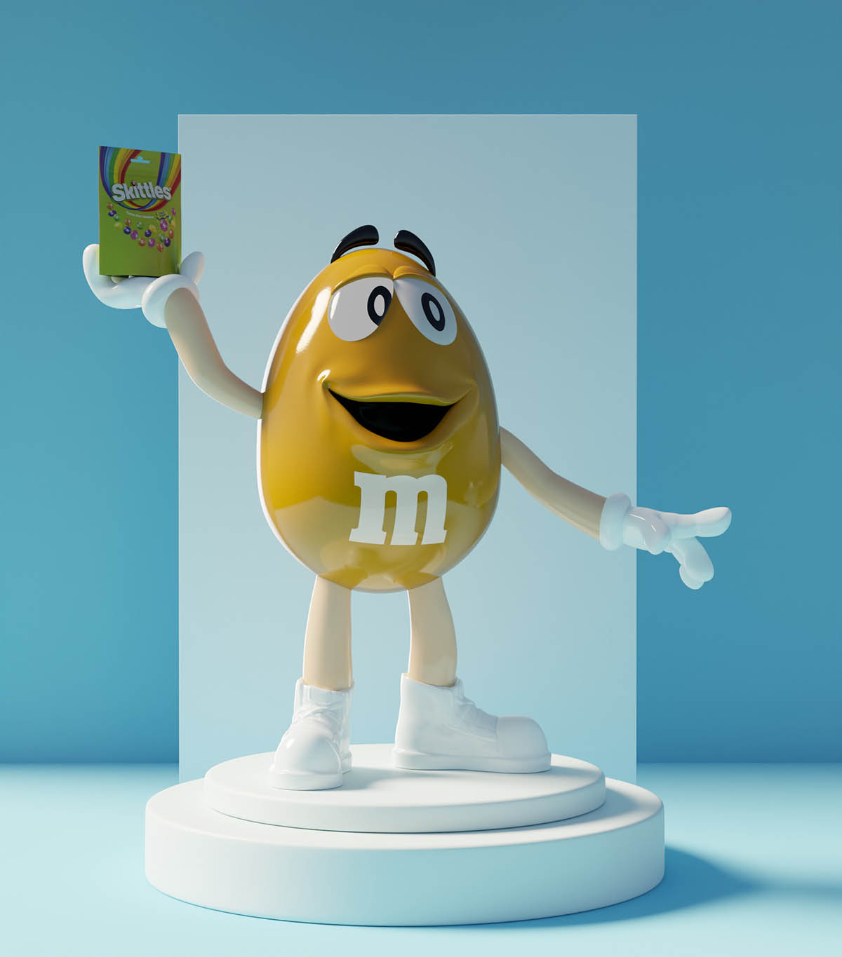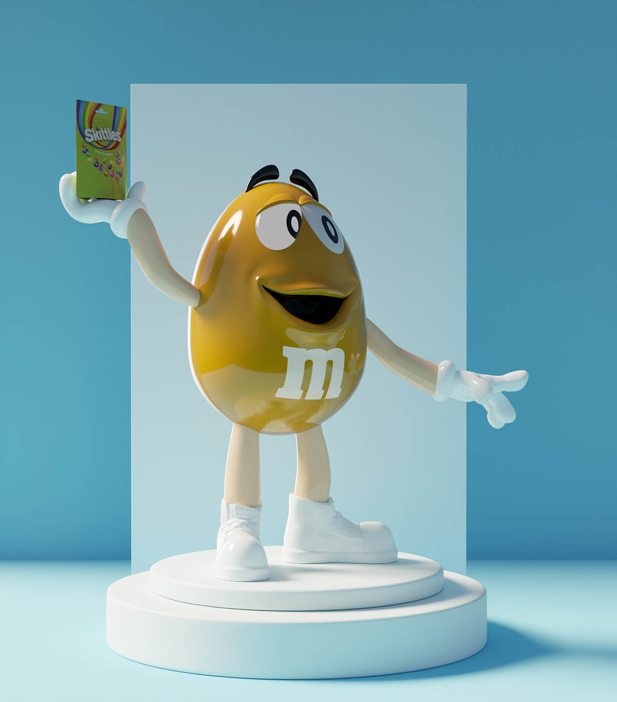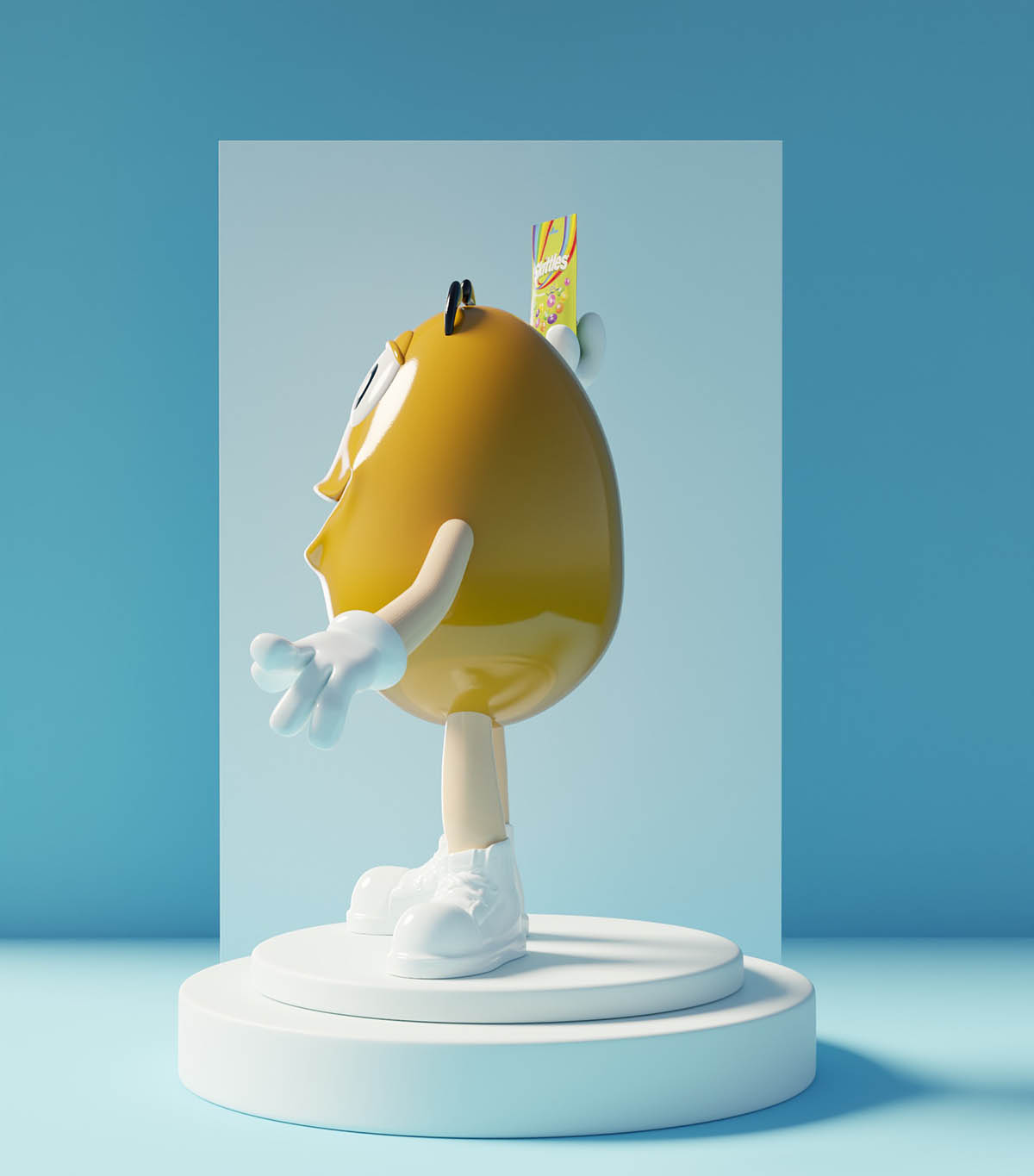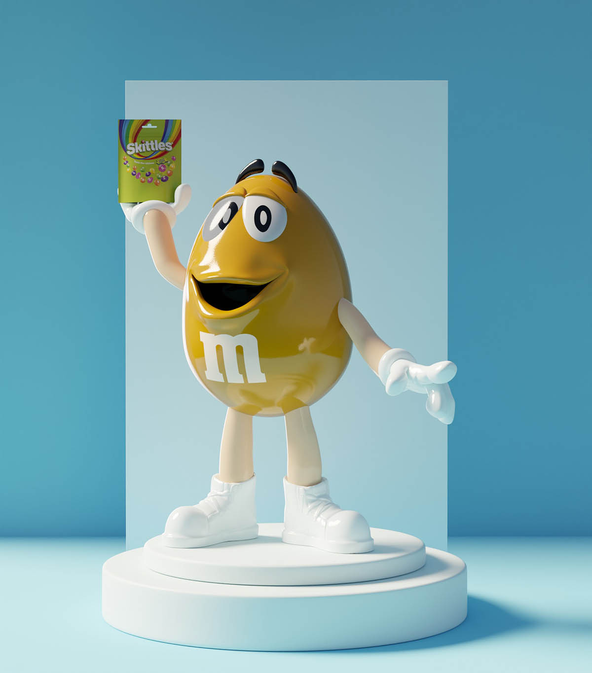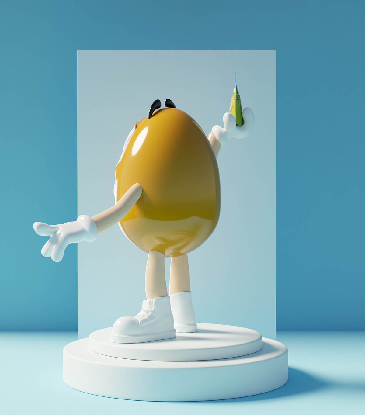 Les figures ont été reproduites avec un grand souci du détail : expressions faciales caractéristiques, gants, chaussures et les lettres « m » bien visibles sur le corps – le tout conforme aux directives de la marque. Les personnages adoptent des poses dynamiques, invitant à se prendre en photo avec eux.