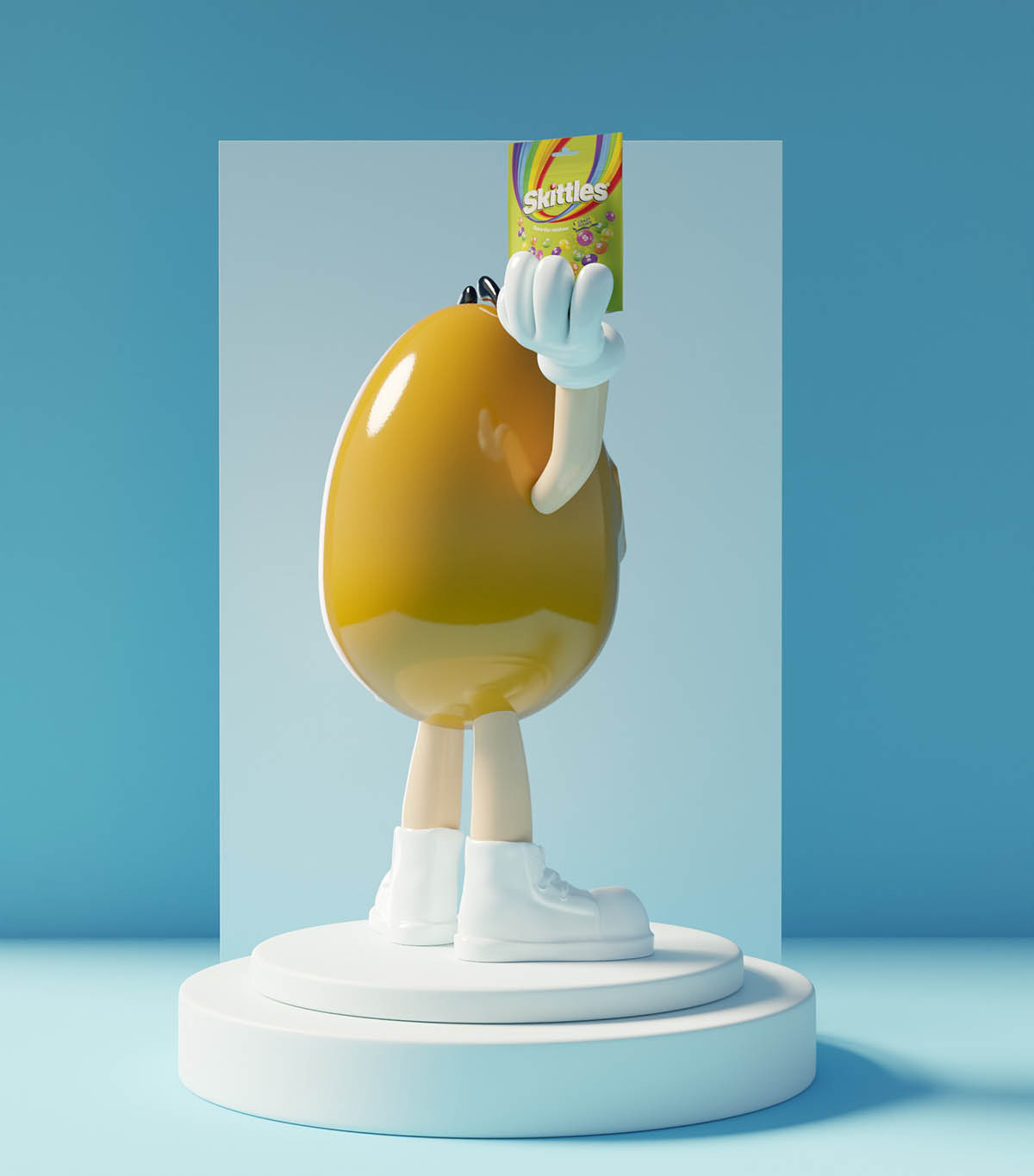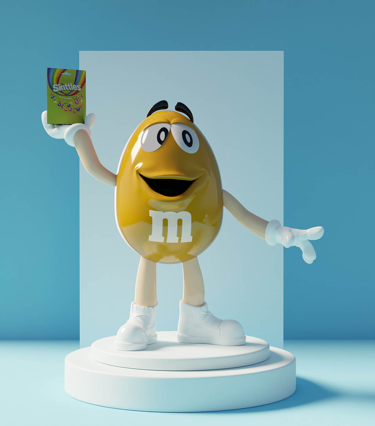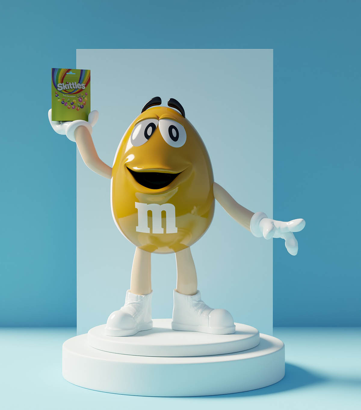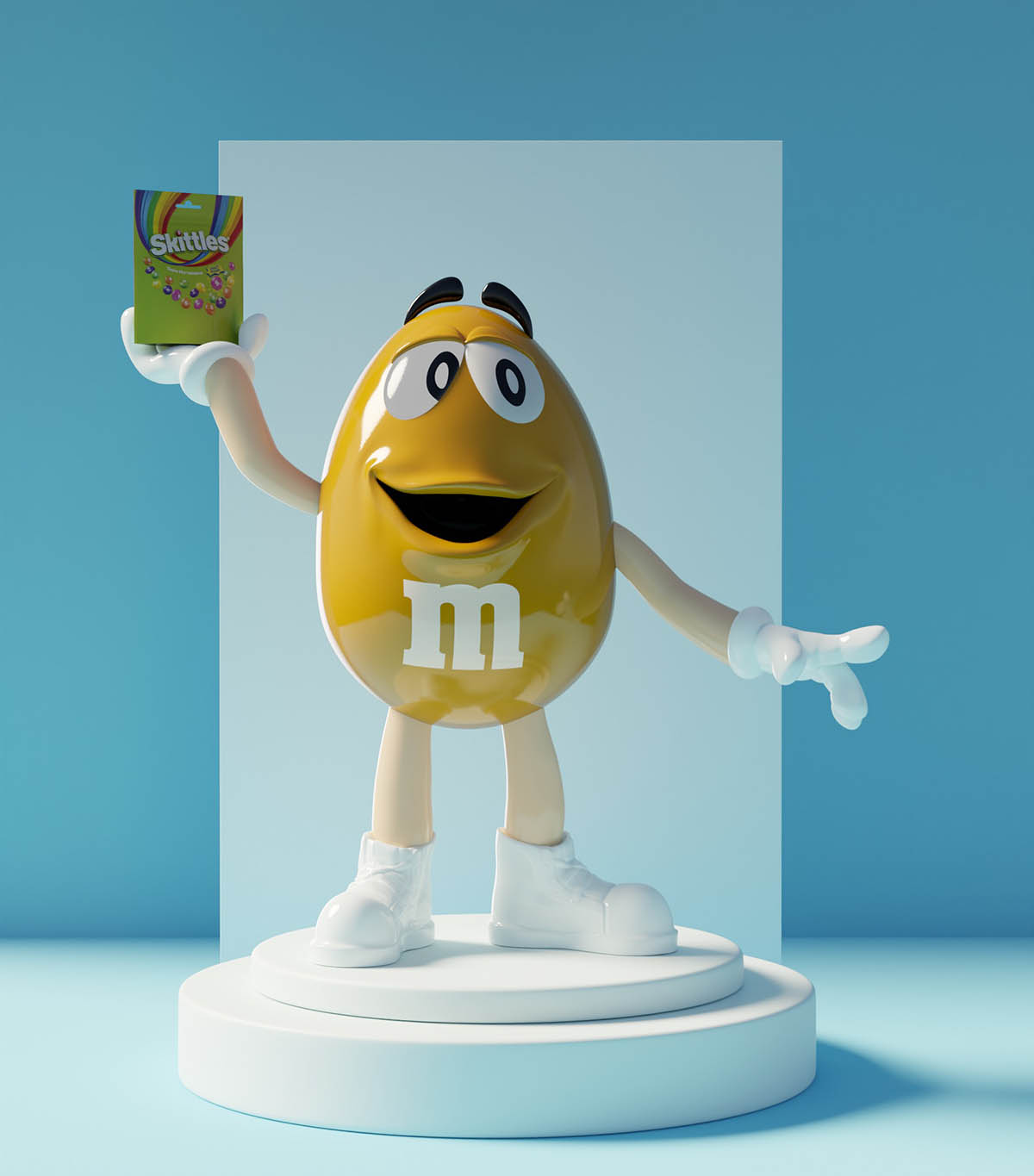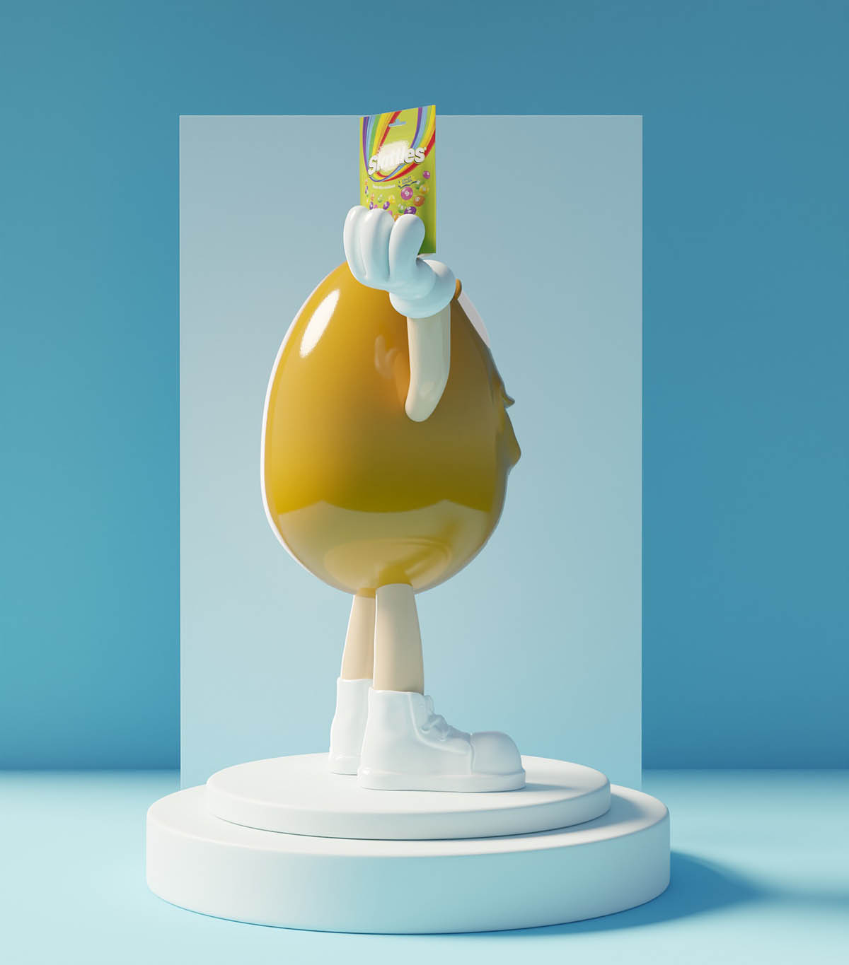 Les figures ont été reproduites avec un grand souci du détail : expressions faciales caractéristiques, gants, chaussures et les lettres « m » bien visibles sur le corps – le tout conforme aux directives de la marque. Les personnages adoptent des poses dynamiques, invitant à se prendre en photo avec eux.
